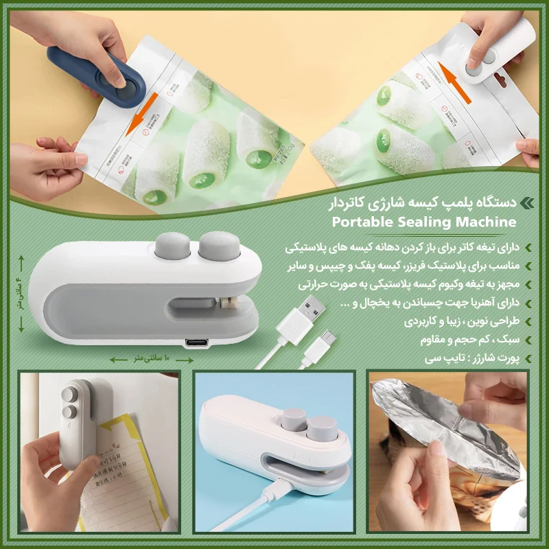 دستگاه پلمپ کیسه شارژی کاتردار یک ابزار کاربردی و مدرن است که به شما این امکان را میدهد تا به راحتی و سریعاً کیسههای پلاستیکی را پلمپ کرده و از محتویات آنها محافظت کنید. این دستگاه با طراحی زیبا و عملکرد آسان، به یکی از لوازم ضروری در هر آشپزخانه تبدیل شده است.